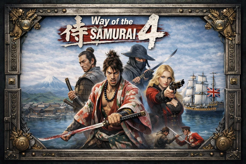 Way of the Samurai 4 en PC ofrece una experiencia de samuráis basada en decisiones, ambientada en el turbulento puerto de Amihama durante el declive del aislamiento de Japón.